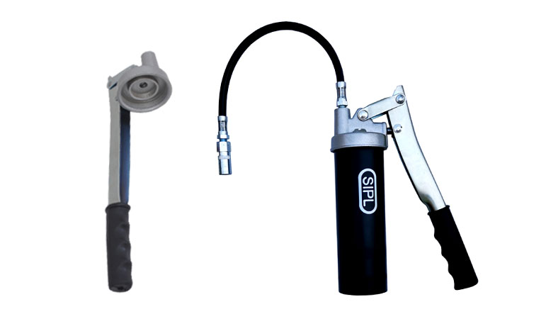 Lever type lube grease gun is designed to allow complete use of lubricating grease without leaking grease onto equipment & tools.